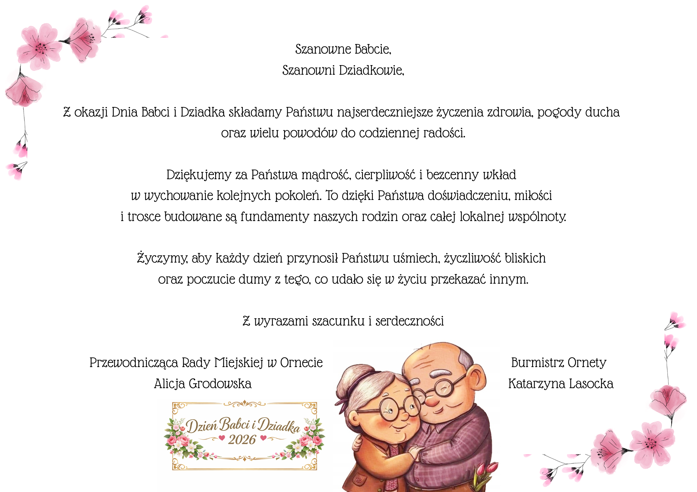 Z okazji Dnia Babci i Dziadka składamy Państwu najserdeczniejsze życzenia zdrowia, pogody ducha oraz wielu powodów do codziennej radości.